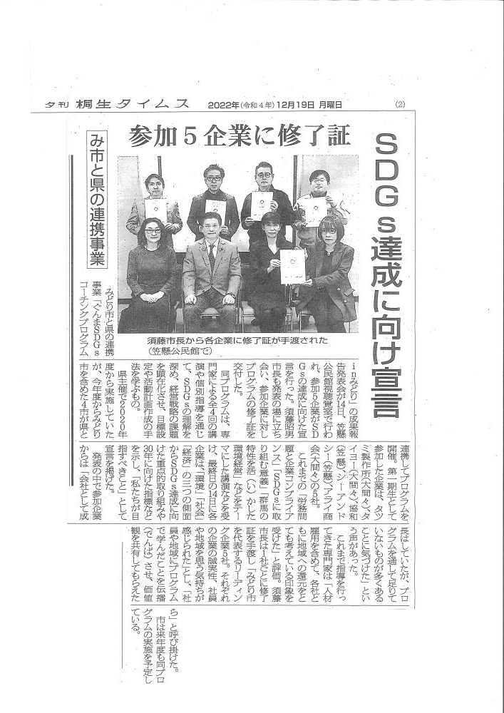 (2022年12月19日付 「桐生タイムス」より)