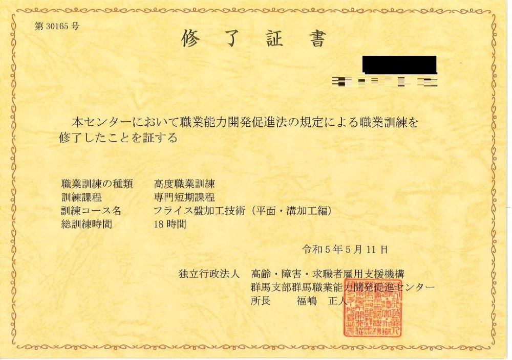 5/9(火)〜5/11(木)の3日間、群馬職業能力開発促進センターで講習及び職業訓練を受講しました。