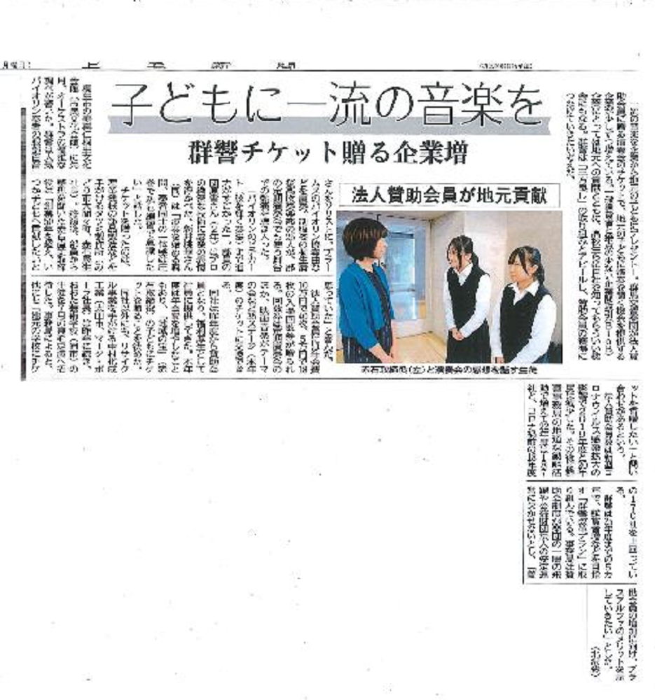 地域貢献活動の一環として桐生清桜高校吹奏楽部の生徒さんへ法人賛助会員に贈られる回数券を利用して演奏会のチケットをプレゼントさせていただきました。終演後、生徒さんと一緒に「桐生タイムス」さんの取材を受けました。