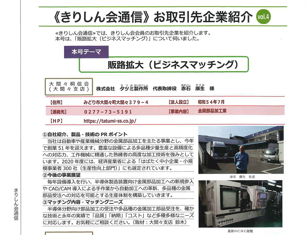 「きりしん経営情報vol.41」の企業紹介に掲載されました。